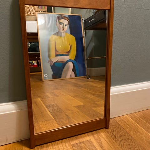 Lille retro spejl med ramme i teak