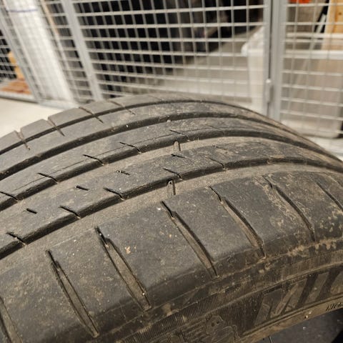 Michelin Primacy 3 sommerdæk med dimensionerne 235/45 R18. Dækkene er oprindeligt fra Tesla Model 3 og har kun køre 50km.