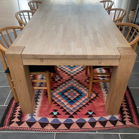 Spisebord i massiv sæbebehandlet egetræ.