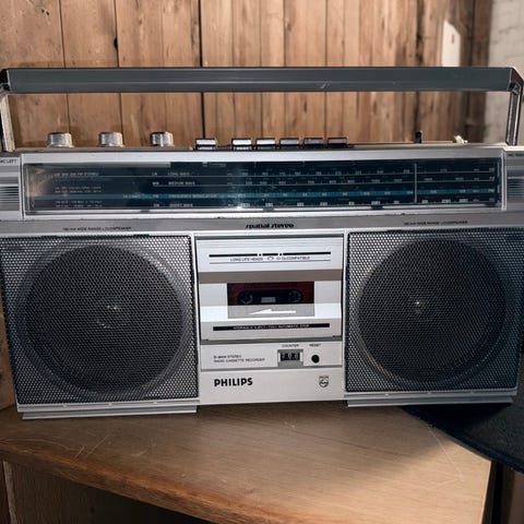 Brugt Fed Boombox , Fede lyd , Radio spiller godt, højtalere virker, selvom det ene stik pt er ødelagt.. Kasette sidder fast og ikke afprøvet., "Søger" sidder fast ,men man kan godt finde radiostationer