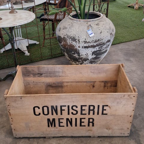 Stor fransk trækasse fra en af Frankrigs mest ikoniske varemærker - Chocolat Menier. 88 (l) x50 (b) x 37 (h) cm.
