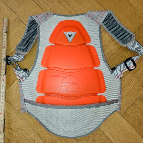 Rygskjoldet bør dække fra lige under nakken til halebenet uden at gå for langt ned.