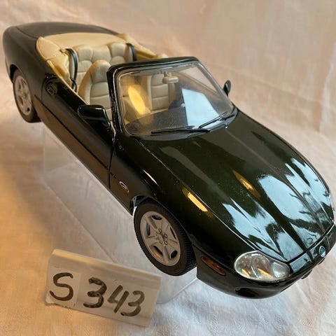 Jaguar XK120 modelbil i hvid farve. Modellen har detaljeret motor, interiør og karrosseri. Velegnet til samling og udstilling.