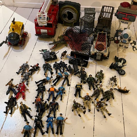 6 soldater, 2 køretøjer, en hund og 6 våben.