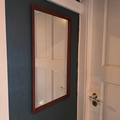 Virkelig flot retro spejl I teak let at hænge op og flot i træet.