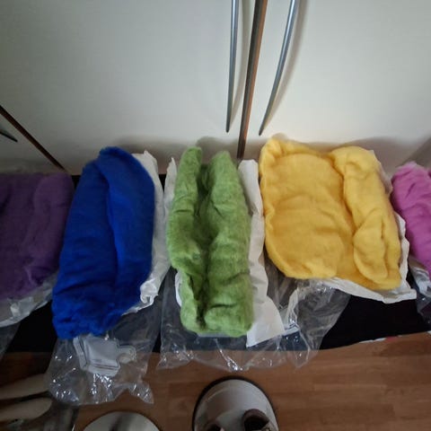 Flere små og store stykker uld til filtning
