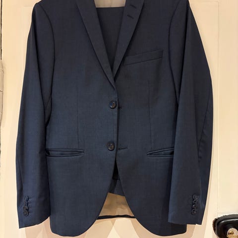 Tiger of Sweden jakkesæt (S. Jile) str 48, mørkeblåt. Nyrenset, i flot stand.