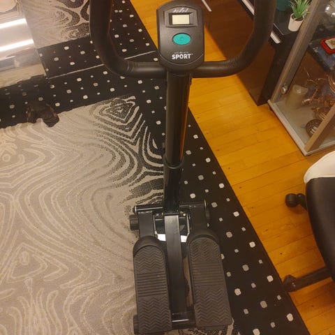 Ministepper træningsudstyr med maksimal belastning på 100 kg. Det er et kompakt træningsudstyr til hjemmetræning.
