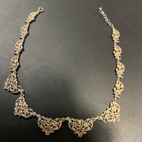 Smuk ART NOUVEAU sølv haææskæde med Rav Perle Stemplet HH 830 S