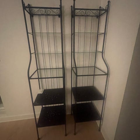 Reol i sort metal fra ILVA. Fylder minimalt i bredden (51 cm) og er nem at indrette med.