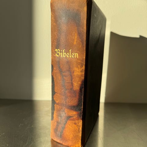 Læderindbundet bibel fra 1902, så 116 års patina ☺️ passet godt på.