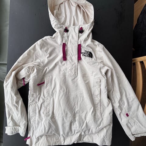 The North Face Andet udendørstøj i størrelse M til kvinder. Jakken er hvid og lavet af polyester. Den er designet til udendørs brug og har flere lommer samt justerbare detaljer indvendigt.