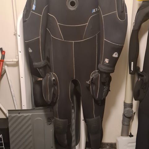 Waterproof D7 nylontech størrelse medium. En dragt i topklasse. Komplet og helt som ny. Har dykket 5 gange i den. Monteret med ringe til tørdragts handsker Waterproof Ultima Twist. Er helt som ny og inkl. feederslange og taske. Spar penge ift. en ny, er købt i dansk dykkerbutik i december 2023.