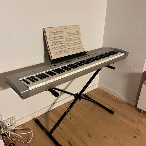 digital piano i sort finish. Indeholder 88 tangenter og tre pedaler. Designet til hjemmebrug med indbygget lydsystem. Velegnet til både begyndere og øvede pianister.