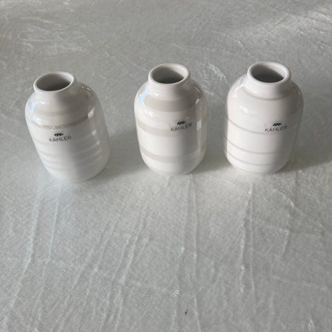 3 stk minivase med perlemor. Design: Ditte Reckweg og Jelena Nordentoft. Keramik højde 8 cm