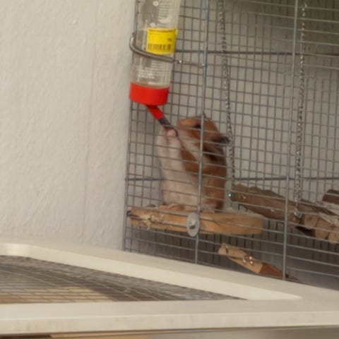 Vores 9 mdr. gamle sorte guldhamster har brug for nogle nye ejere. Dens bur, løbehjul, huse, sandkasse og vandskål følger selvfølgelig med.
