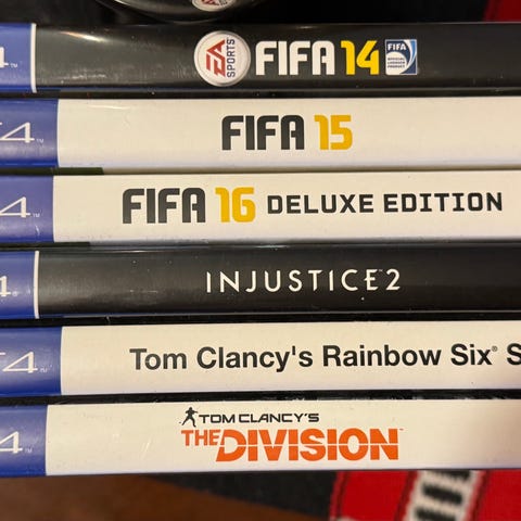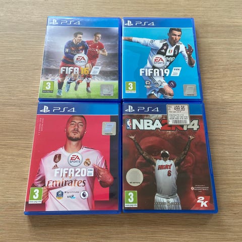 PlayStation 4 spil med titlerne FIFA 16, FIFA 20, Dragon Ball Xenoverse, Overwatch og FIFA 18. Spil i standard størrelse til PlayStation 4 konsol.