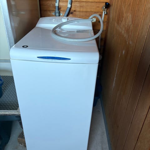 Whirlpool Topbejent vaskemaskine med topbetjening. Produktet er designet til vask af tøj og har funktioner til effektiv rengøring. Farve og materiale er ikke specificeret.