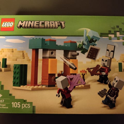 LEGO Minecraft byggesæt med forskellige figurer og elementer fra Minecraft universet. Sættet indeholder detaljerede byggeklodser, der kan samles til forskellige scener og figurer fra spillet.