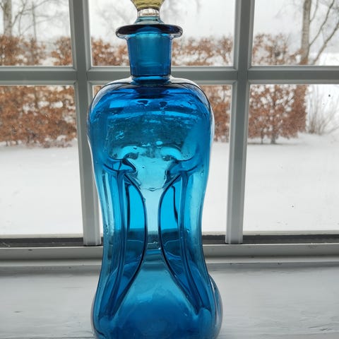 Særdeles velholdt Holmegaard klukflaske med original glasprop. Højde 28 cm. Afhentes i Vanløse eller sendes.