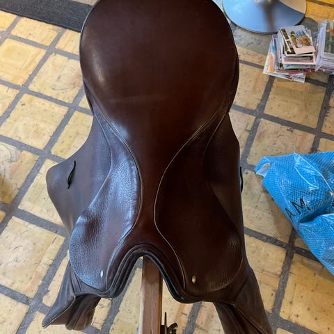 Den står flot og har været brugt til leg og træning indendørs på en træhest. Vi kender ikke noget til hvilket hest den passer til, men den står flot og kan godt bruges til ridning igen.
