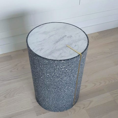 Gammelt rundt bord med marmorplade