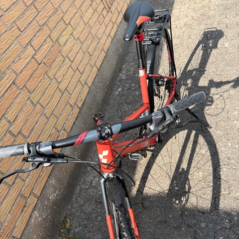 Cyklen står med helt ny kassette og kæde. Den skifter godt gear bagpå og bremser fint. Men forskifteren virker ikke og den sidder fast på en den midterste klinge. Tror ikke det er noget der er svært at fikse. Cyklen kan dog stadig køre helt fint og skifter godt bagpå. Forgaffel sidder også fast.