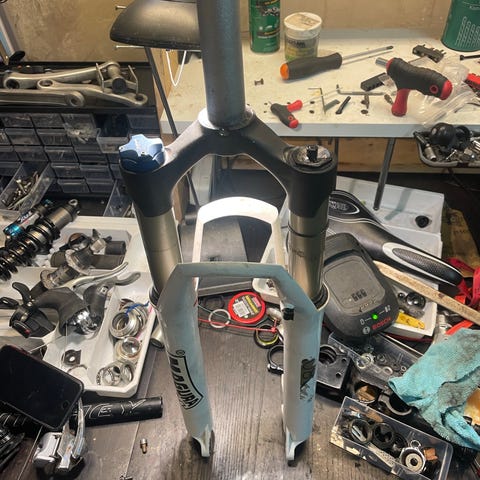 Har denne swis 26" luft forgaffel 100mm, sælges som reservedel da den taber olie.
