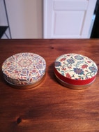 Dåser, -, Helt nye smukke og dekorative dåser, som kan bruges til pynt eller opbevaring af smykker, sæbe, småting osv. Måler 7 cm i bredden og 2 cm i højden. Aldrig brugt. Sælges samlet til 70 kroner. Kan afhentes i Ørestad, København S, eller sendes med posten (køber betaler fragten).