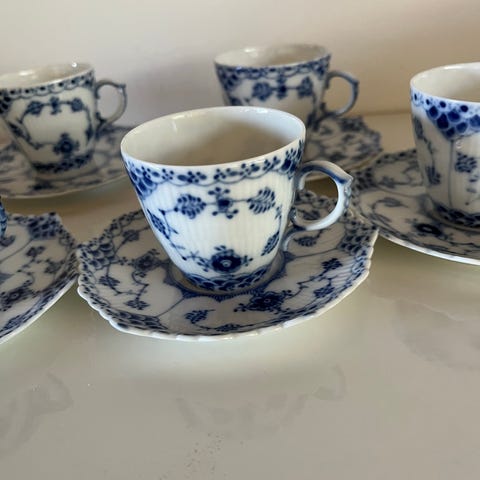 Fin “guldkant” på de hvide/cremefarvede kopper