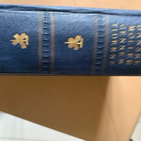 Bogen er i hardback med rødt omslag, men uden tekst på forsiden. Derfor vises første side i bogen.