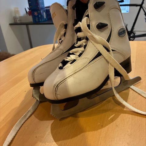 RZ skøjte i børnestørrelse 33. Skøjterne er hvide og designet til børn. Velegnet til forskellige former for skøjtning.