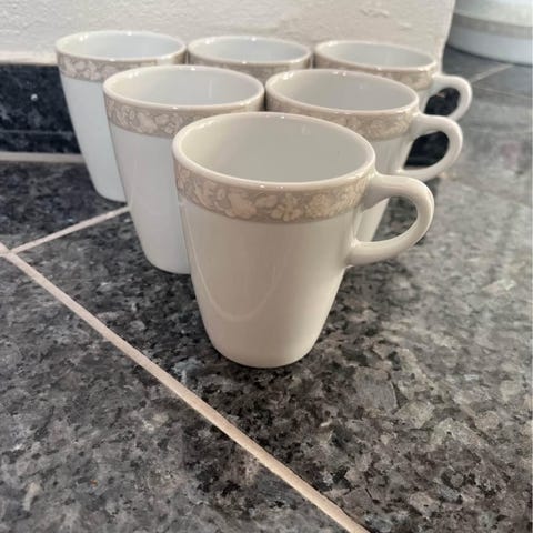 Har 12 krus i god stand. 100 kr. stykket eller 1100 kr. samlet for dem alle.