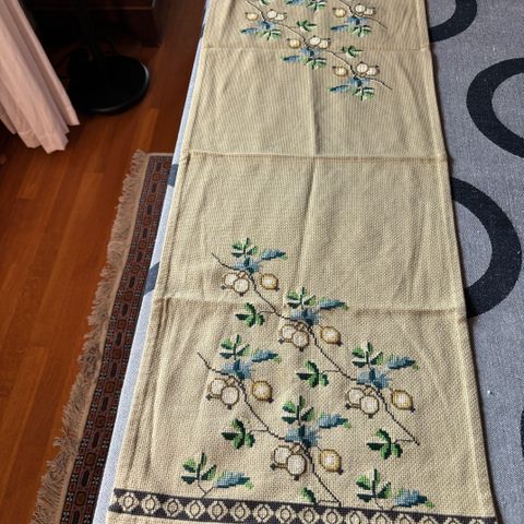 Fineste håndarbejde, løber i brun filt med smukt broderi.