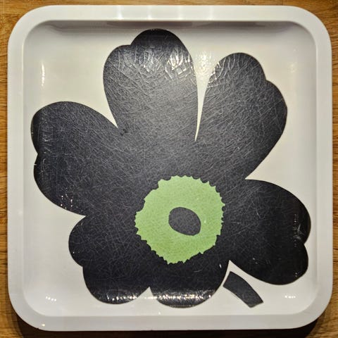 Marimekko oiva tallerken med beige og hvide blomster