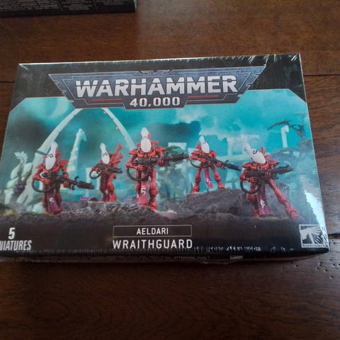 To warhammer Aeldari tanks hvor wave serpent er uåbnet i folie, mens falcon'en ikke er i folie, men dog stadig ny.