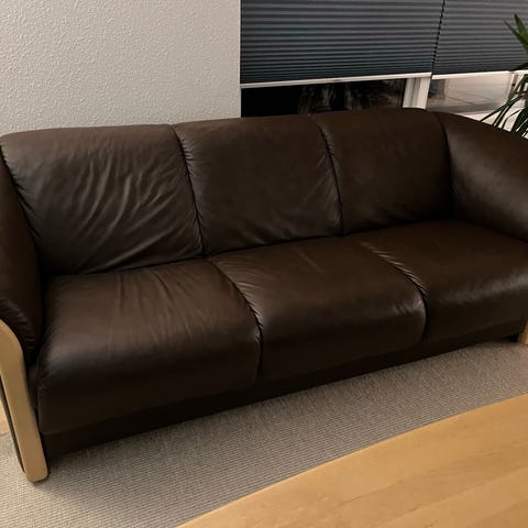 Lovely black leather 3 person sofa for sale, in good condition, all the dimensions are shown in the many photos. Pickup is from Vesterbro, we live on the 3rd floor but I can help you get the sofa down to your vehicle. If you ask really nicely I might also be able to help you get the sofa into your house/apartment, if that's needed.