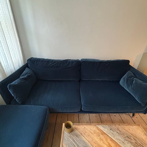 Grå velour sofa
