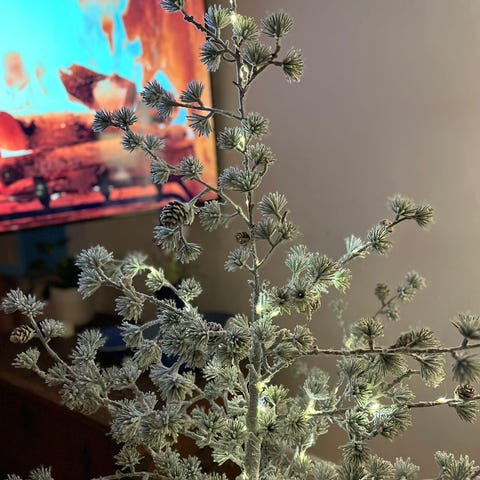 Meget smukt cedertræ med lyskæder fra Da'core. Led lys i varm hvid