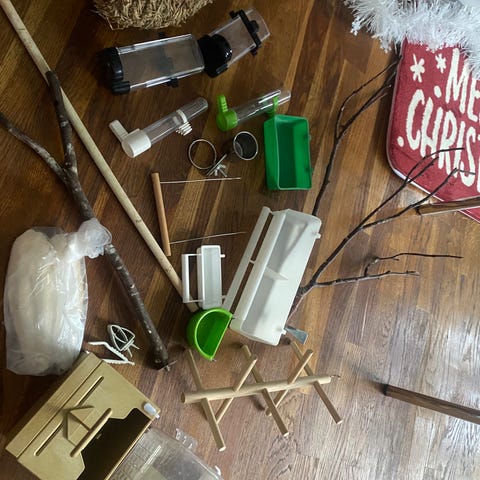 Fin transporttaske til fugle, undulatstørrelse, eller en papegøje. Med sidepind og plads til fodertrug og vand. Forneden er der skuffe der kan trækkes ud,så man kan rense bunden.