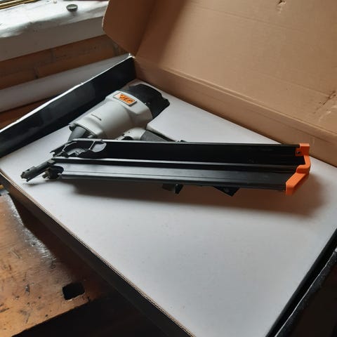 Tjep ZE-65 tromlesømspistol til fastgørelse med søm i størrelsen 32-65 mm. Leveres med tilbehør og opbevaringskasse. Velegnet til professionel brug inden for byggeri og montage.