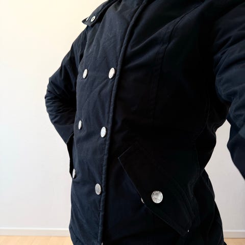 Gode og pæne. Stoffet omkring lynlåsen er skrællet af, men alt virker som det skal.