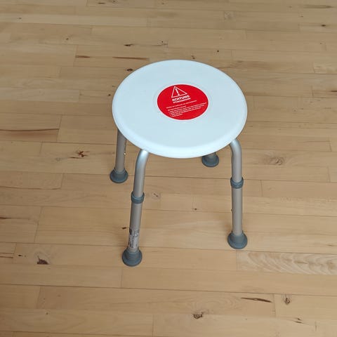 Brusebænk med håndtag og justerbare ben blå og hvid