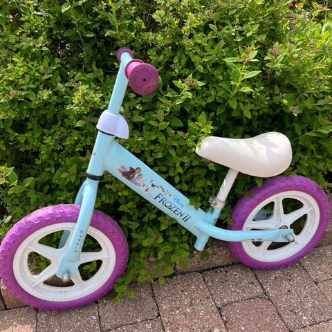 Winther Kangaroo løbecykel i hvid farve. Cyklen er designet til børn og har et enkelt stel med justerbart sæde og styr for tilpasning til barnets størrelse. Egnet til udvikling af balance og koordination.