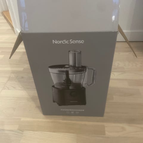 Nordic Sense Foodprocessor med sort design. Maskinen har en stor beholder og flere funktioner til madlavning og forberedelse af ingredienser.