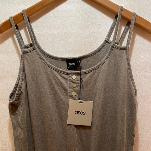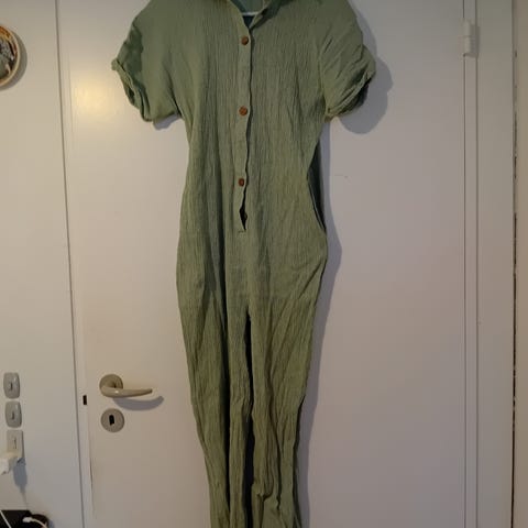 Str. 36, i polyestercifon. Med vide ben, bare skuldre, ærme lukkes med sløjfe. Til hverdag med sandal/klipklap og fest med stiletter. Nypris 1200kr