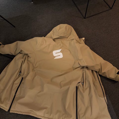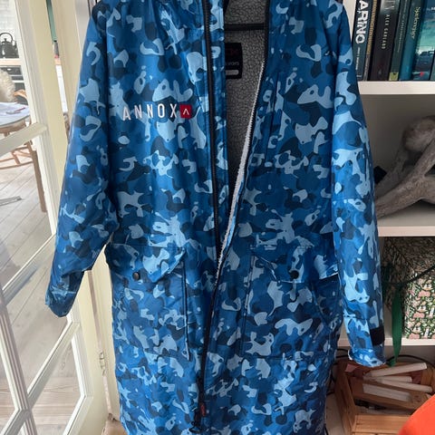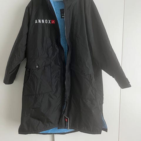 Langærmet skifte klæde, ultravarm foring af lammeuld, med tovejs lynlås. Ideelt til vinterbadning. Ubrugt, som ny.