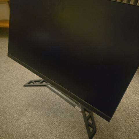 Lenovo 24 tommer skærm med sort kabinet og rund fod. Skærmen har en skærmstørrelse på 24 tommer og en bagpanel med porte til tilslutning. Skærmen er med strømkabel.