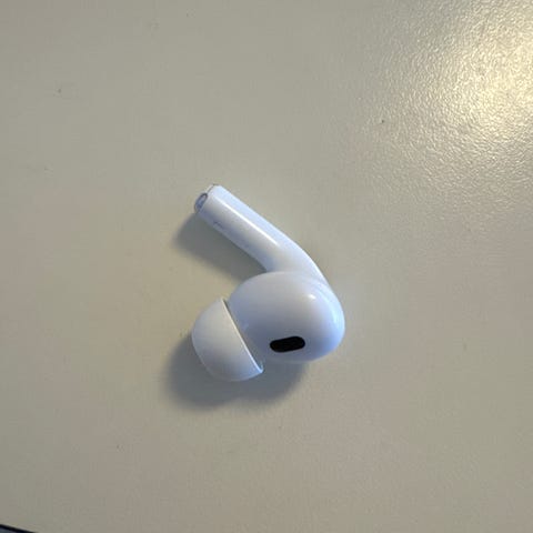 Apple AirPods Pro. Bemærk! den venstre er væk, så det er kun den højre og opladningsetui. Det er den første version af Pro modellen.