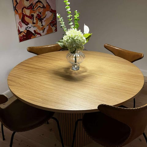 Bordet er en ældre model som fremstår i pæn og velholdt stand med almindelige brugsspor. Et solidt kvalitetsbord fra BoConcept, som både er praktisk i hverdagen og elegant til gæster.